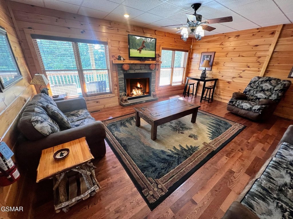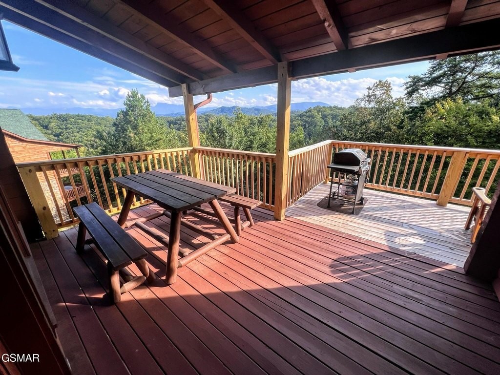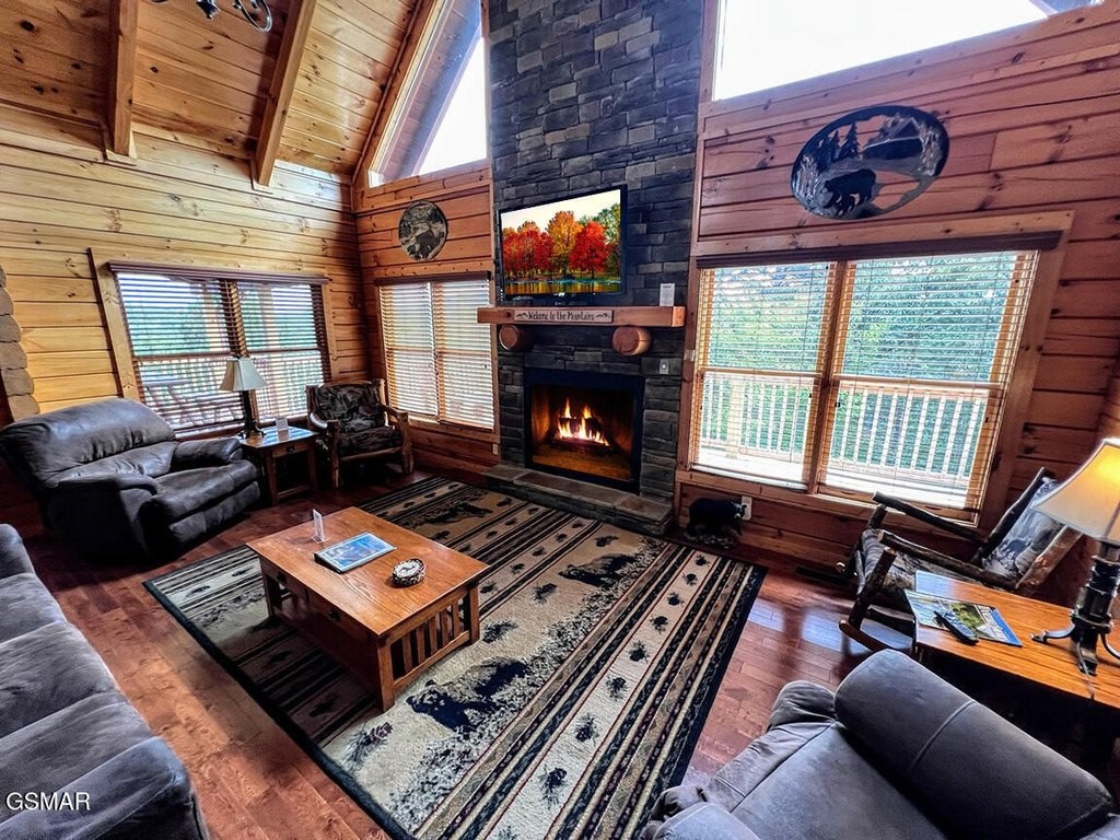 Paradise in the Heart of Pigeon Forge! This spacious 4-bedroom, 4.5-bath cabin offers breathtaking mountain views and an unbeatable location just 2 miles from the Parkway. You'll be minutes from Dollywood, The Island, the new Margaritaville attractions, and the entrance to the Great Smoky Mountains National Park-the most visited park in the country. Unlike a typical rental cabin, this property was thoughtfully designed with comfort and entertaining in mind. Main Level Gourmet kitchen with eat-in bar and full dining table Spacious living room with a cozy gas log fireplace and stunning Smoky Mountain views Primary en-suite with the same incredible views and direct deck access to the private hot tub Upper Level Two bedrooms, each with a private bath Spacious sitting area Lower Level Second living room and gaming area Private theater room Additional large suite with walk-out access to the lower deck Additional highlights include ample parking for 5-6 cars, easy year-round access, and a property that is well-maintained and sold fully furnished. With its prime location, spectacular views, and turn-key setup, this cabin is a proven winner as a short-term rental or private mountain retreat.